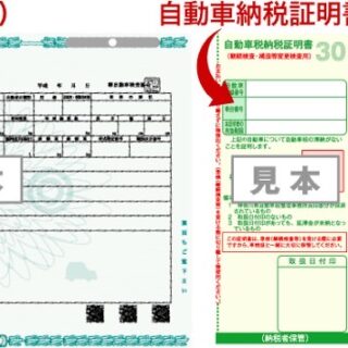 毎年5月頃に自動車税事務所などから送付される「自動車納税通知書」に同封されています。